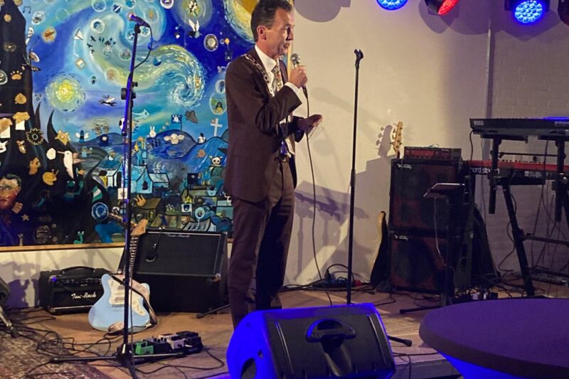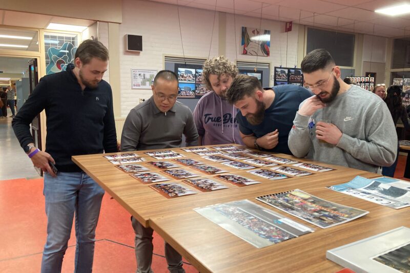 Al direct bij binnenkomst gonsde het over de gangen: enthousiaste omhelzingen na jaren weerzien of aftastend rondkijkend naar herkenning. Het verhaal werd omlijst met vele foto’s, krantenknipsels en ander